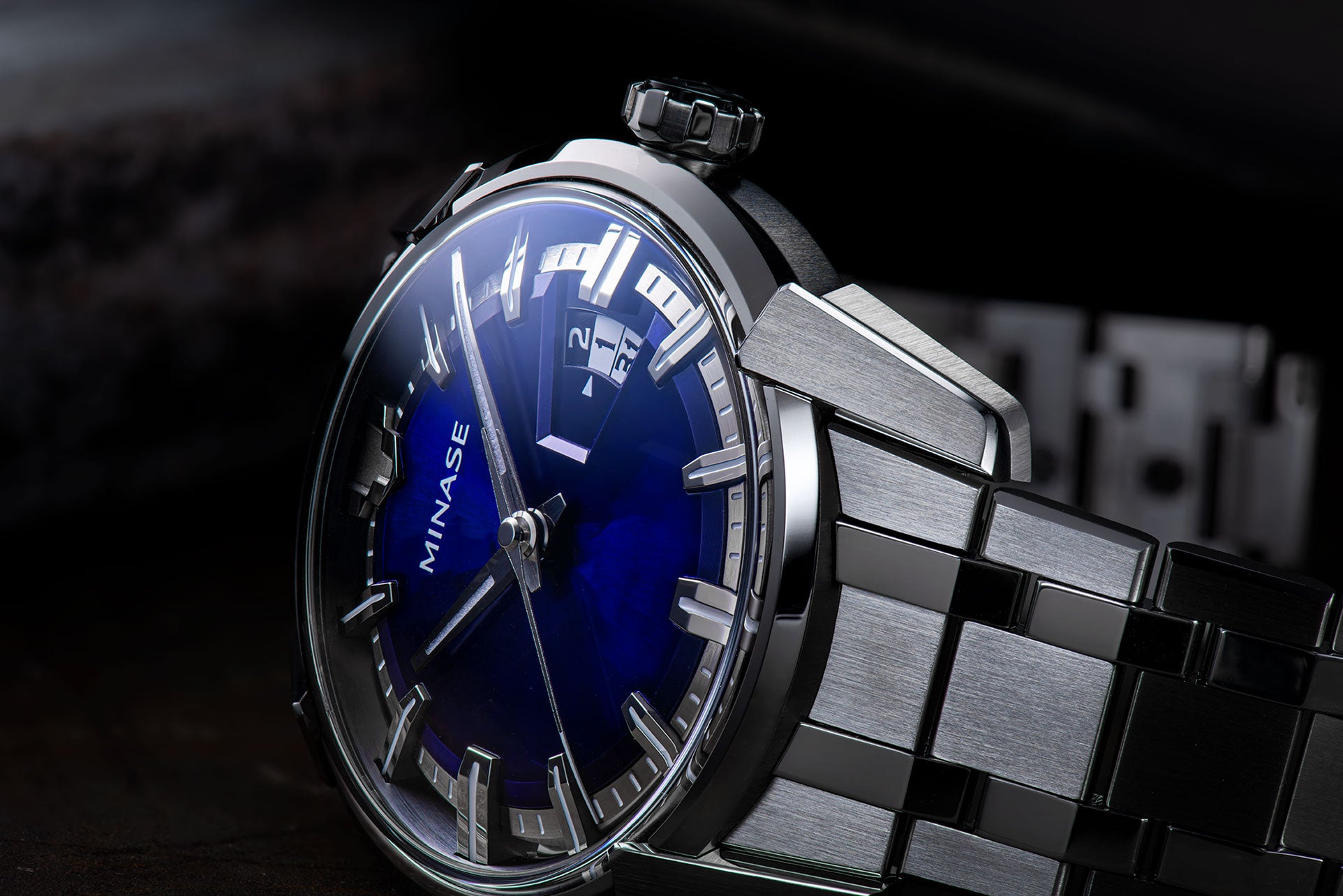 MINASE is one of the few Japanese watch brands that adopts Zaratsu polishing (also known as Zaratsu). This finishing technique, which gives steel parts a perfect smooth surface by hand, has its roots in the technology of Swiss and German polishing machine manufacturers, first adopted in Japan by a case manufacturer (Hayashi Seiki Seisakusho). Just polishing one link of a steel bracelet requires up to 479 processes and more than 15 hours of meticulous craftsmanship.